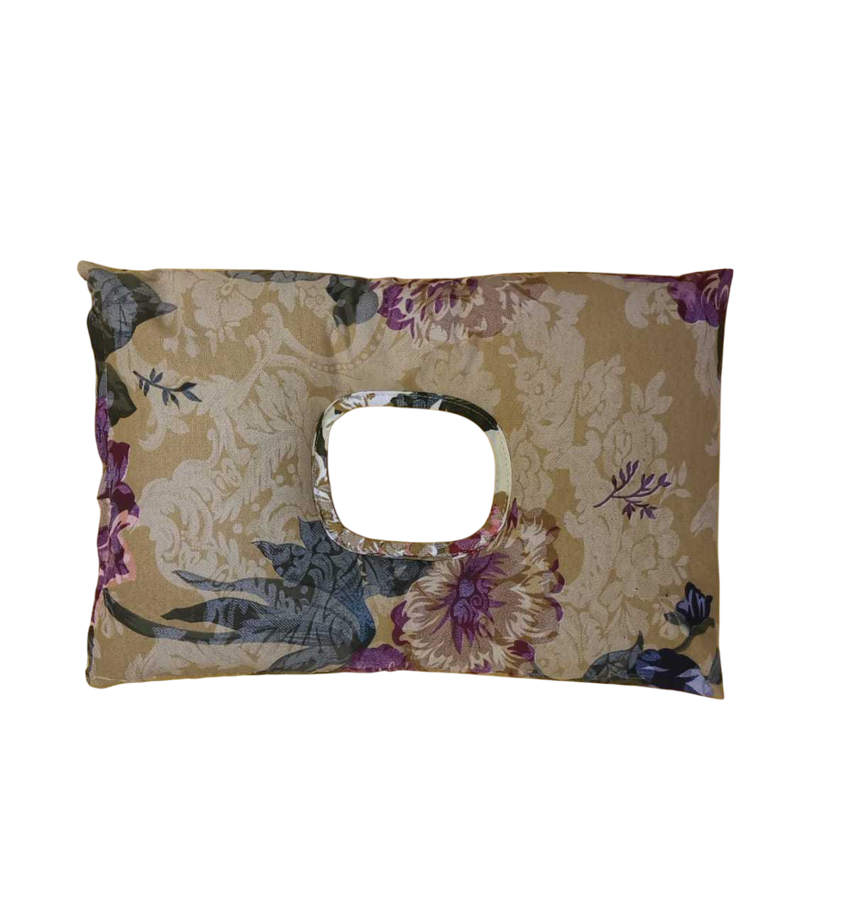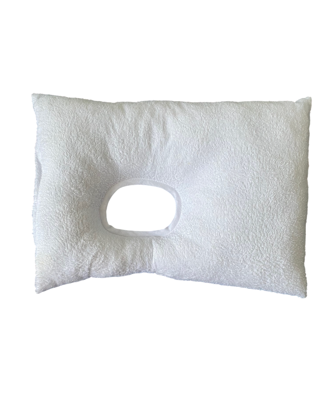 Отверстие по середине предназначено для затылка (на боку для уха), помогает голове оставаться по средней линии тела, основная часть подушки обеспечивает равномерную поддержку, при необходимости с жёстким ограничением.