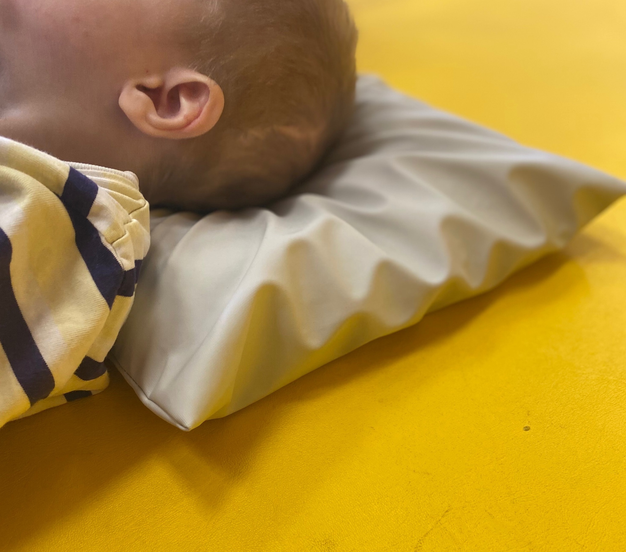 Утяжеленный наполнитель подушки легко принимают необходимую форму, благодаря этому, подушка хорошо подстраивается под контуры, поддерживая мышцы шеи и воротниковой зоны, тем самым снижая напряжение с шейного отдела позвоночника. Вес подушки помогает удержать ребенку голову по центральной линии, предотвращая либо ограничивая её поворот. В случае имеющейся у ребенка тенденции поворота головы только на один бок и сильно выраженной кривошее, положение можно скорректировать, пересыпав большую часть наполнителя на необходимую сторону.